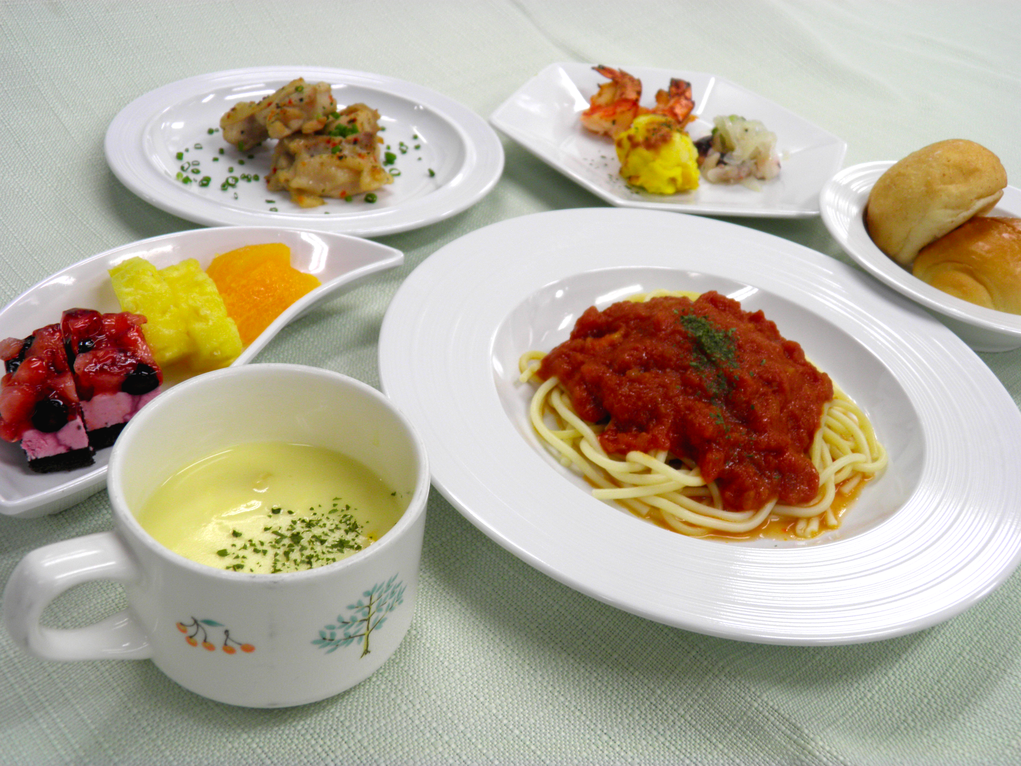 産後入院中の食事 トップページ産後入院中の食事 産後のお母さんたちに、少しでも「おいしい!」と思っていただけるよう 特別な夕食を用意しています。総合病院でありながら、病院食ではない特別な「産後食」 お食事も思い出の1ページになりますように。