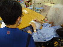 整形外科病棟では院内デイとして、集団でのレクリエーションや作品作り、体操等を看護師と協力して行っています。